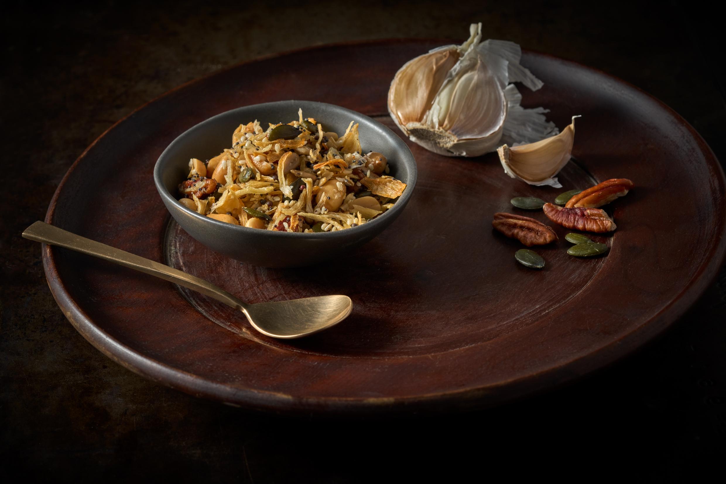 Our delicious savoury sprinkle blends the perfect mix of roasted nuts (peanut & pecan nut), crispy onion flakes and a variety of seeds (pumpkin, sesame, sunflower, brown mustard, poppy) to deliver a legendary topping to add extra crunch, texture and flavour to your salads, roast vegetables, and soup dishes.