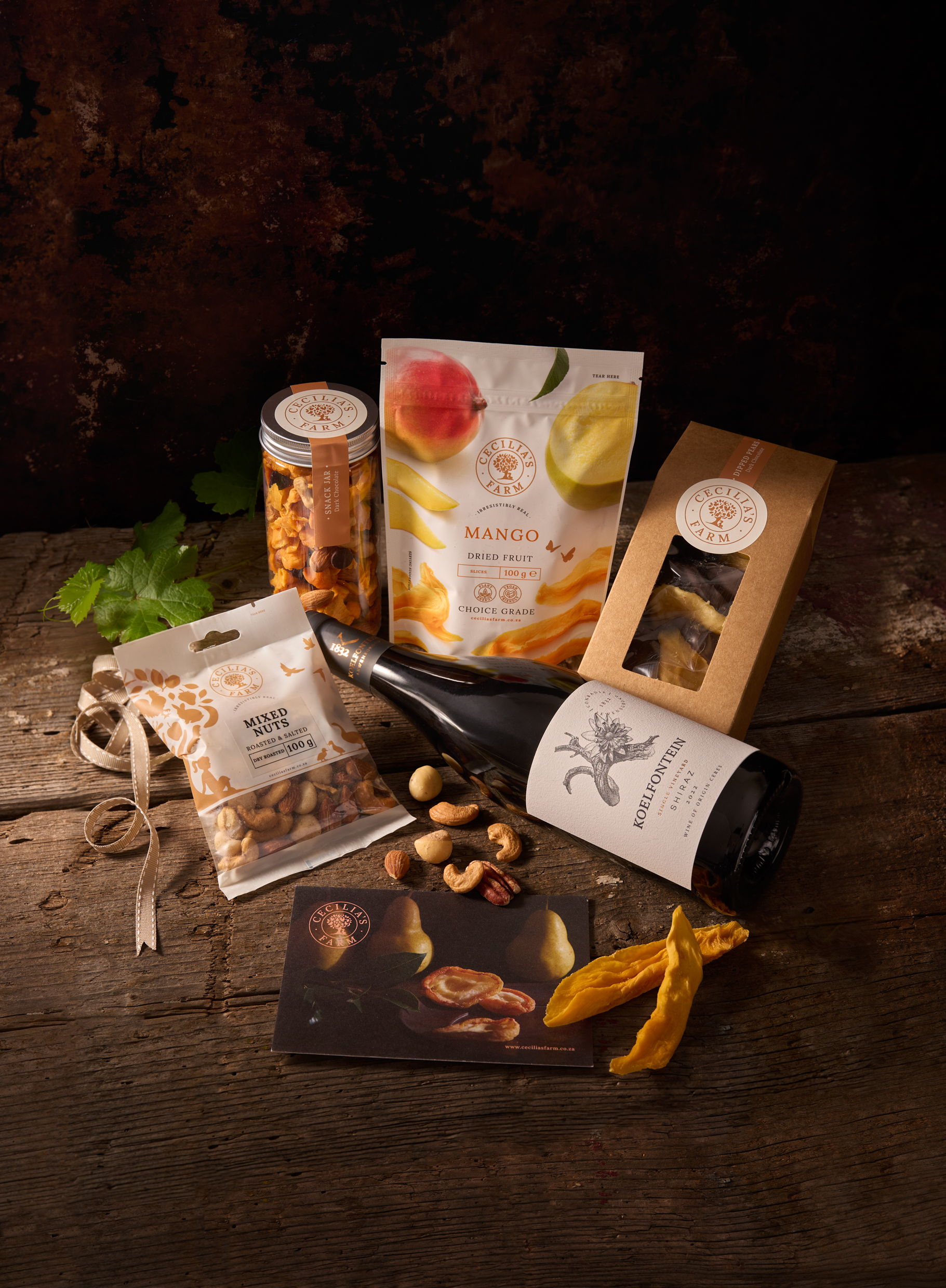 Bursting with berry flavours and alluring spice notes, our Koelfontein Shiraz is in great company with indulgent nougat, toffee, chocolate dipped pears and perfectly dried mango. We’ve added little bit of naughty with a whole lot of nice with the addition of roasted and salted Mixed Nuts, Cocoa Coconut Flakes and our Dark Chocolate Bakers Snack Jar!